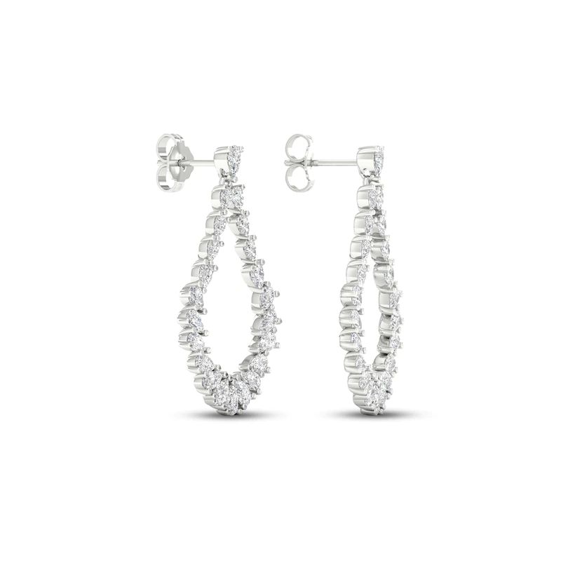 These luxuriant earrings feature dazzling pear-shaped diamonds forming a dangling teardrop design. Fashioned in iconic 14K white gold, the earrings have a total diamond weight of 2 1/2 carats and secure with friction backs.